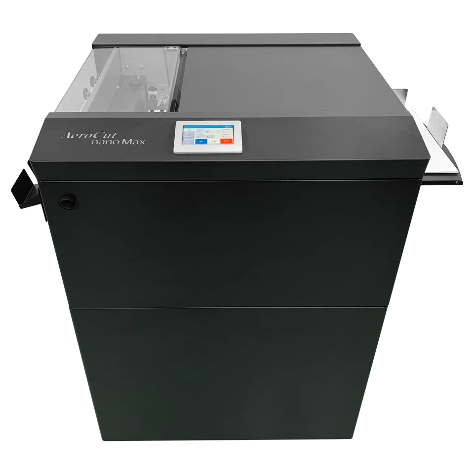 The AeroCut nanoMax is equipped with a color touch screen, and comes pre-programmed with 31 jobs, can store up to 80 additional custom programs, including Flex Mode programs as well